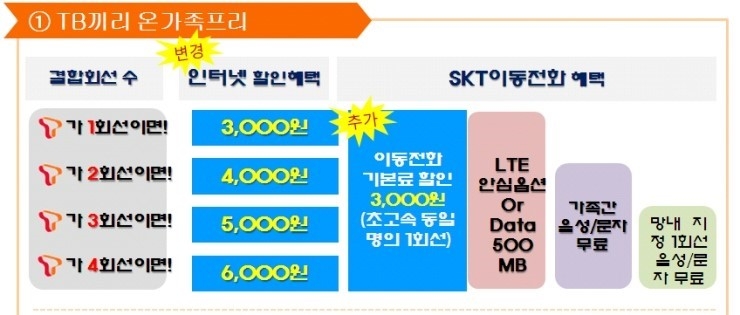 SK브로드밴드 TB끼리 온가족프리 - sk핸드폰 1회선 사용시 가장 추천하는 상품!