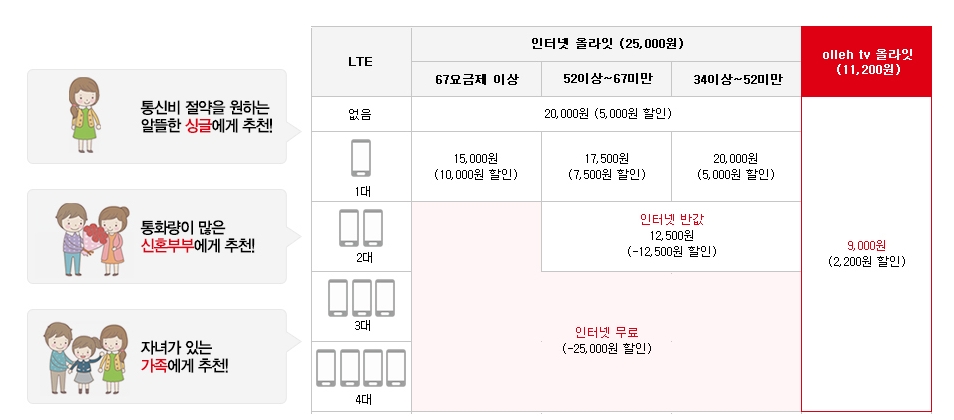 KT핸드폰 LTE 3회선이상 사용하실 시 인터넷은 무료. 인터넷 올라잇!