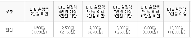 대체적으로 LTE 620요금제를 많이 사용하시니까 평균적으로 4,400원의 요금할인 혜택이 있습니다.
