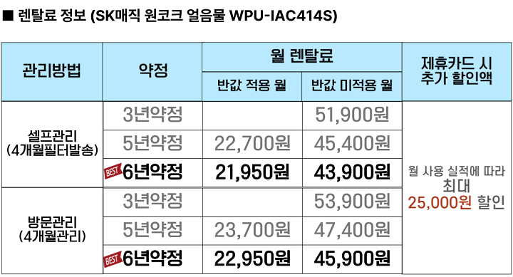 6) SK매직 원코크 얼음물 정수기(WPU-IAC414S)