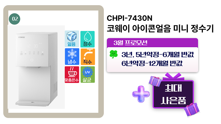 2) 코웨이 아이콘얼음 미니 정수기(CHPI-7430N)