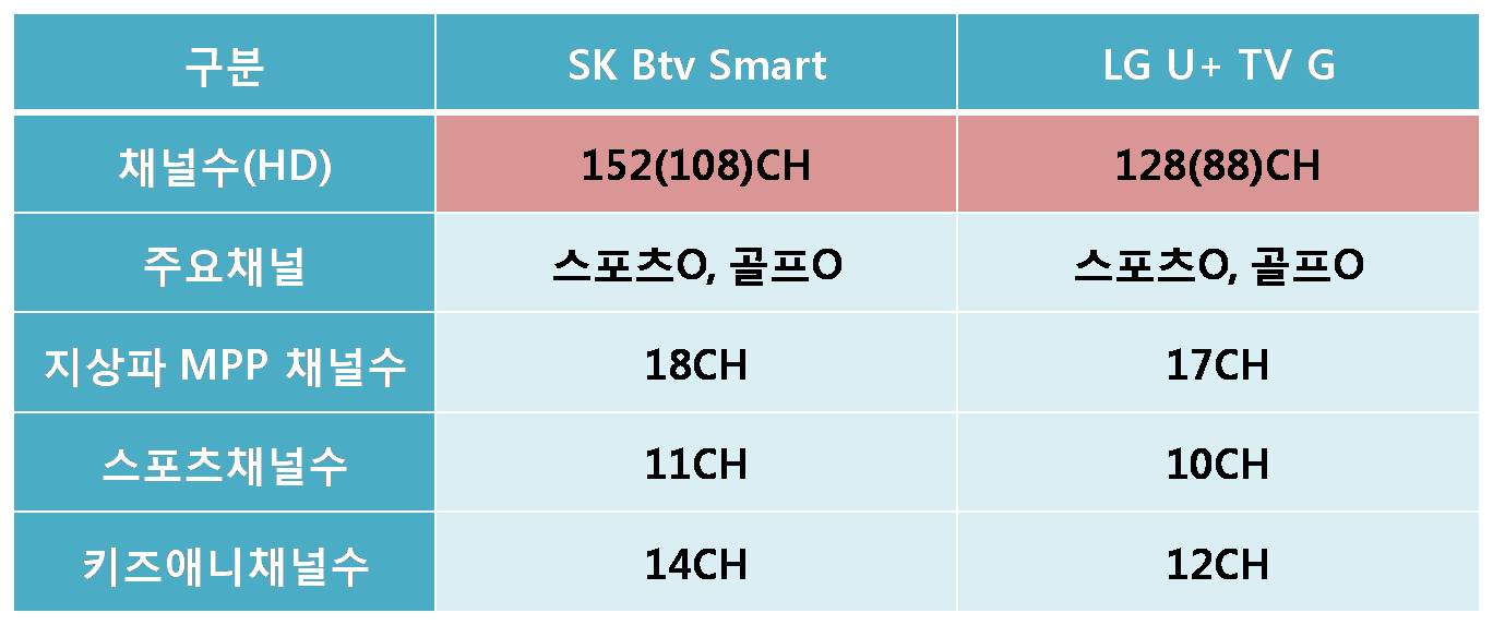 오늘은 SK브로드밴드와 LG유플러스 인터넷TV 가입에 있어 중요한 요금 및 채널에 대해 스마트형 TV를 기준으로 비교를 해보도록 하겠습니다.
