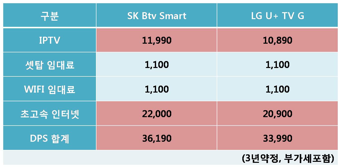 인터넷TV 가입 비교 - SK btv 스마트 VS LG 유플러스 tvg