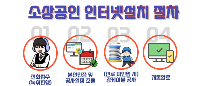 ※ 소호인터넷 설치는 광케이블 공사가 없으면 2~3일, 공사가 필요한 경우 약 7일 정도 소요됩니다.
