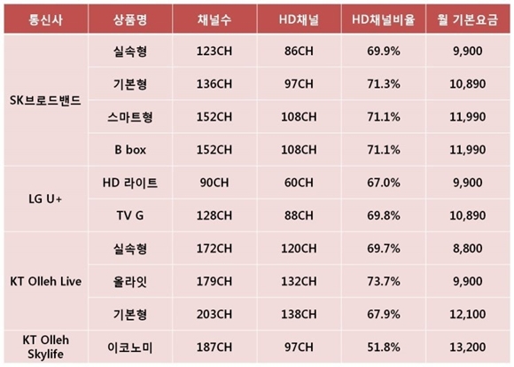제목 | IPTV 채널, 요금 7월 현재 통신3사비교 (SK BTV, KT olleh TV, LG U+TV) |