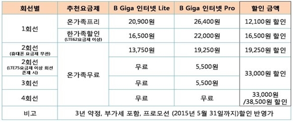 전화 결합 시 2,200원 할인! IPTV 결합 시 5,500원 할인! + (프로모션) 추가 2,200원 할인 ※ 프로모션 기간 : 2015년 4월 30일까지!