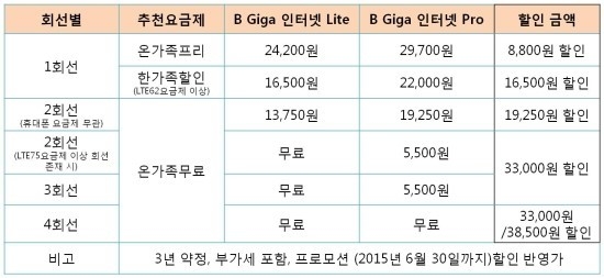 2. 온가족무료로 기가 인터넷가입 시 요금 할인 행사
