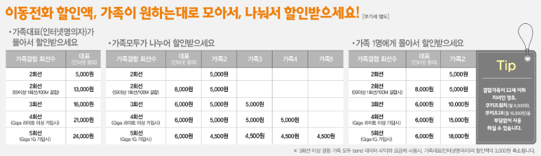 : 이동전화 할인혜택은 가족이 원하는대로 모아서, 나눠서 할인 가능