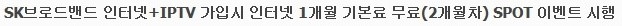 SK브로드밴드 인터넷+BTV 가입시 인터넷 1개월 기본료 무료 (2개월차) SPOT 이벤트 시행