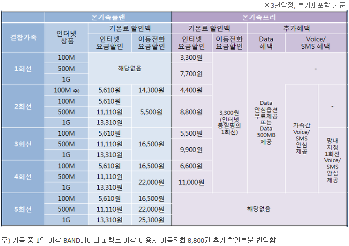 SKT인터넷요금제 온가족플랜 온가족프리 혜택비교