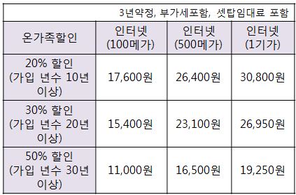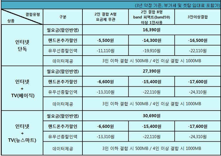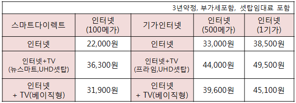 ※참고 : 제시된 가격은 3년약정, 부가세포함, IPTV 셋탑임대료가 포함된 금액입니다.