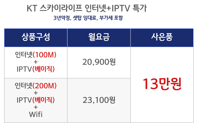KT 스카이라이프 인터넷+IPTV 특가상품 특징 및 혜택