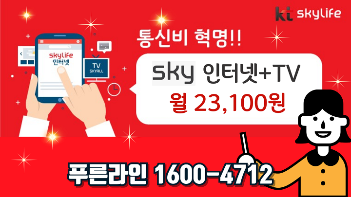 KT skylife 스카이인터넷+티비 월 23,100원!! 특가상품가입 세부요금, 사은품, 특징 결합할인 한눈에!