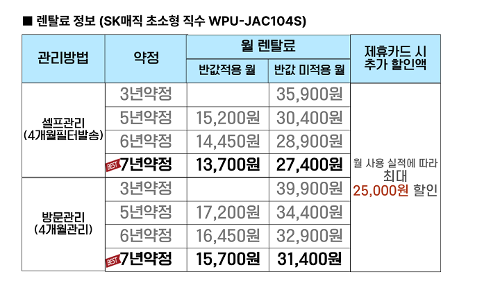 25년 코웨이, 쿠쿠, sk매직, 청호나이스 등 주요 정수기를 합리적인 가격에 렌탈할 수 있는 기회!!