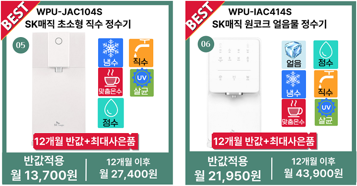 6) SK매직 원코크 얼음물 정수기(WPU-IAC414S)