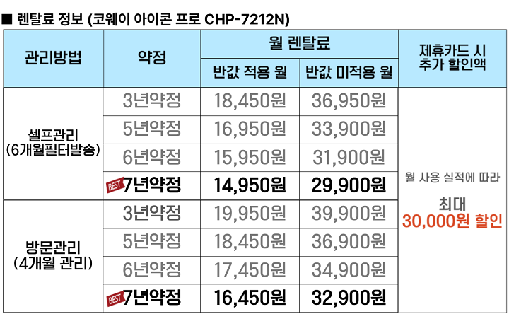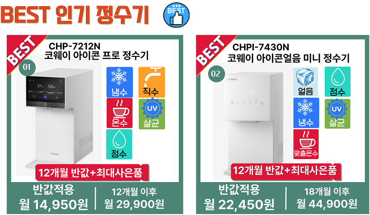 1) 코웨이 아이콘 프로 정수기(CHP-7212N)