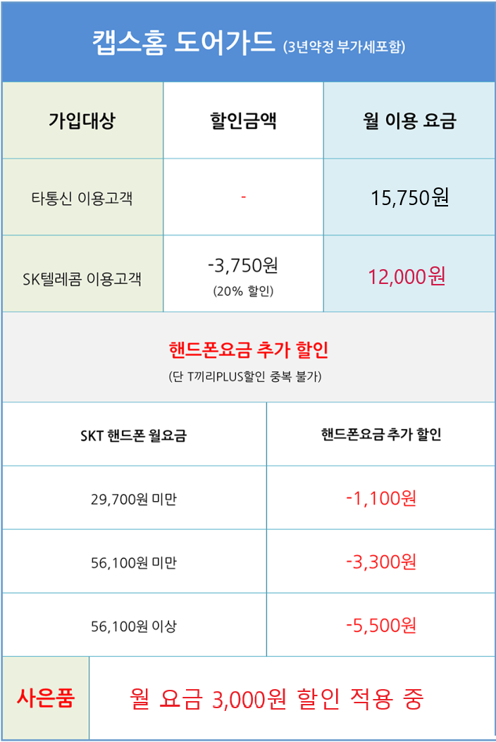 현관문 앞 CCTV ADT 캡스홈도어가드 요금 및 사은품