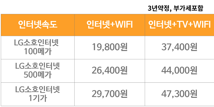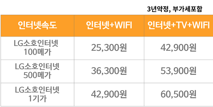 LG소호인터넷 월 요금 안내(3년약정, 부가세포함)