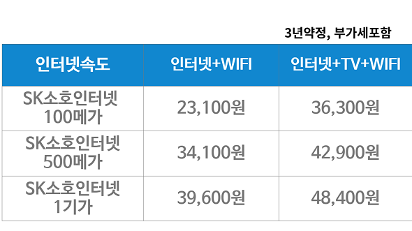 SK소호인터넷 월 요금 안내 (든든인터넷 기준)