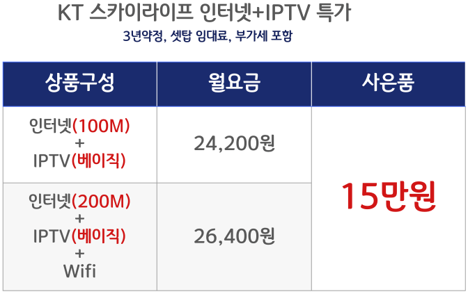 KT 스카이라이프 인터넷+IPTV 특가상품 특징 및 혜택